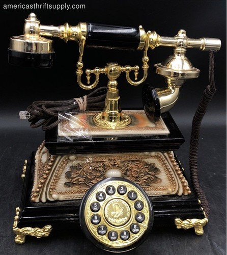 Luxurious gold and black ornate French-style phone with detailed brass accents. Stunning statement piece!